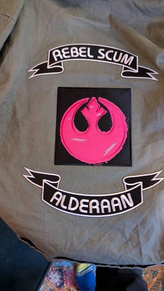 Cursive Rebel Scum with bottom Alderaan Rocker - $30 (1st picture)